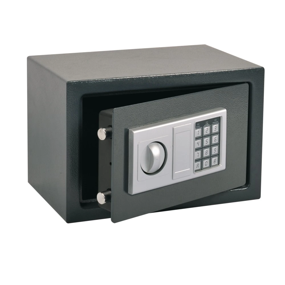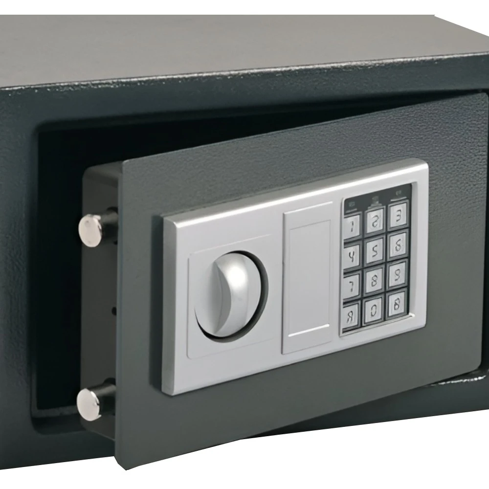 Električni sef za nameštaj sa površinom obloženom praškastim premazom. Može se koristiti sa digitalnim kodom od 3-8 cifara. Sa reverzibilnom bravom. Dolazi sa 2 ključa za hitne slučajeve. Unutrašnje dimenzije: 30x14x19 cm. Odličan uređaj koji pruža visok nivo bezbednosti za vaše dragocenosti.