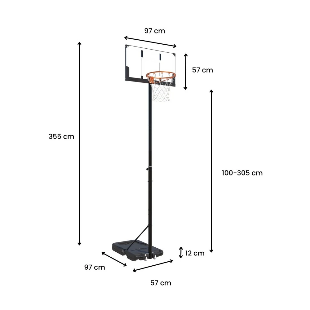 Stabilna baza: Baza dimenzija 97 x 57 cm može se napuniti sa do 38,5 kg vode ili peska, držeći obruč bezbednim tokom intenzivnih igara.