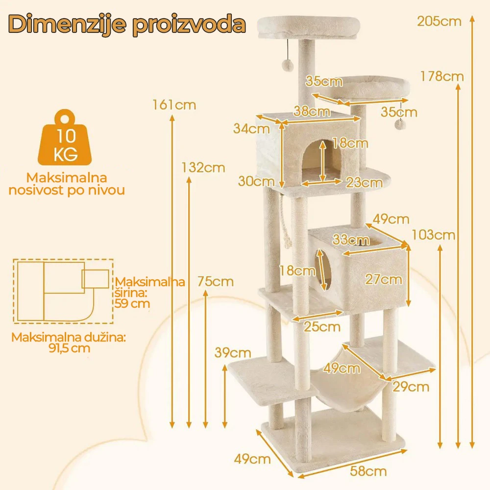 Maca Dvorac grebalica i penjalica za mačke 205cm Bež