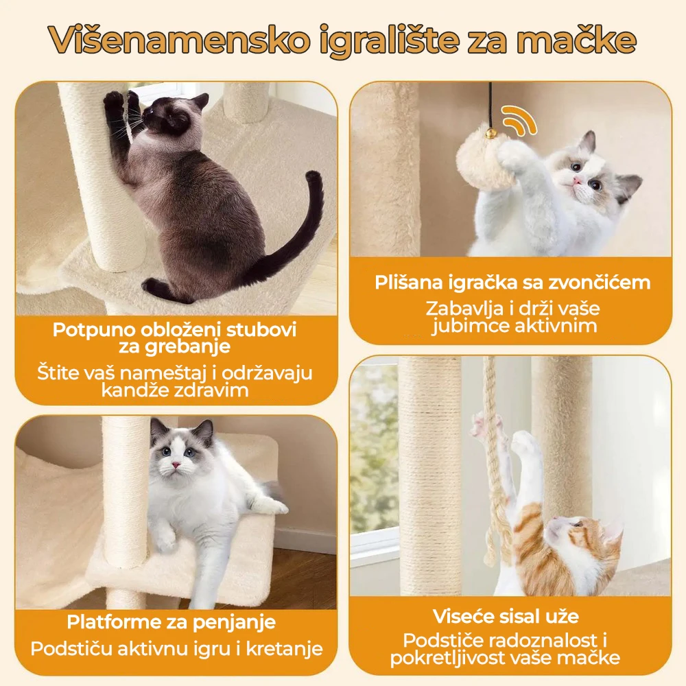 Veliki mačji toranj nudi prostor za do 5 mačaka istovremeno.