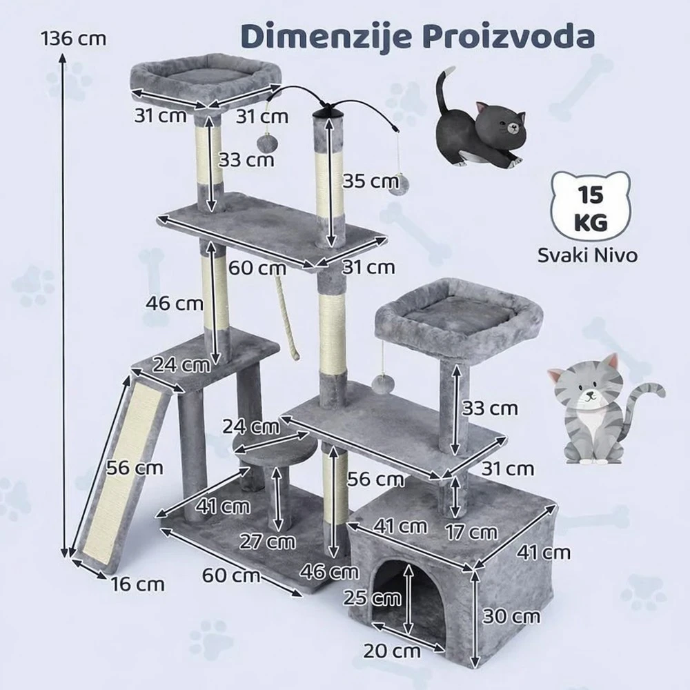 Grebalice i rampa 2-u-1: Prirodni sisal i kombinovana rampa za penjanje i grebanje štite nameštaj i održavaju kandže.