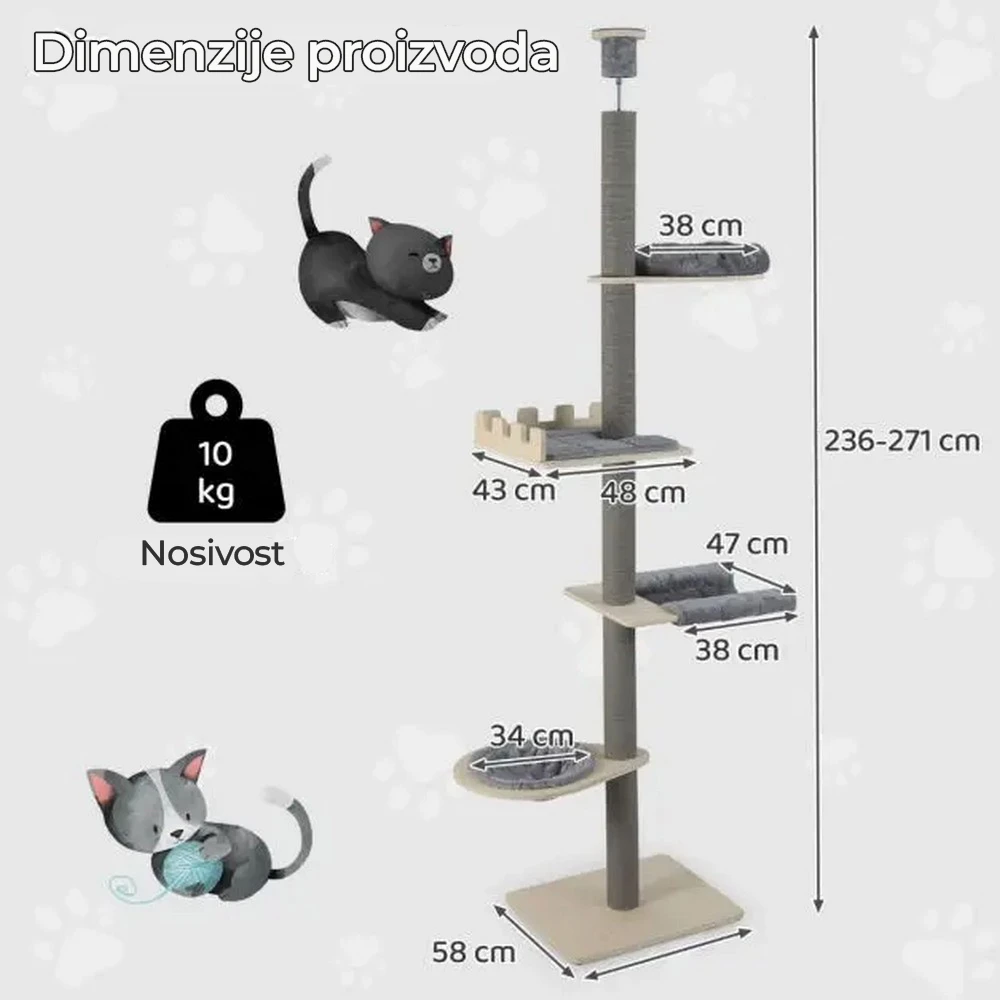 Maca Toranj grebalica i penjalica za mačke do plafona 271cm Siva