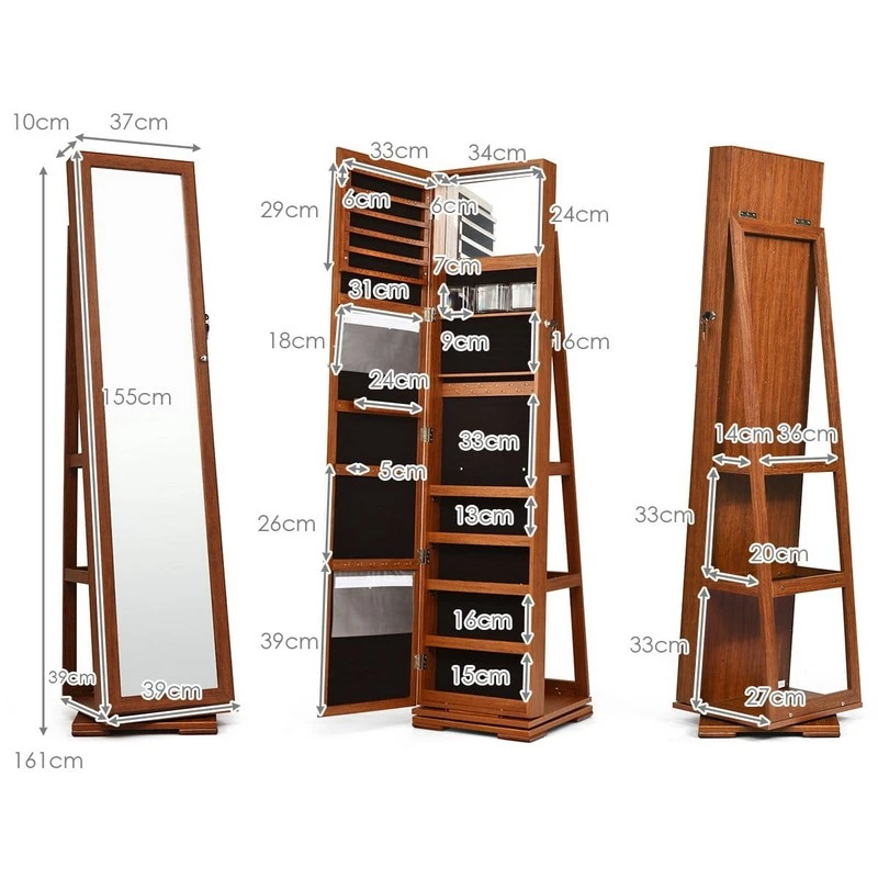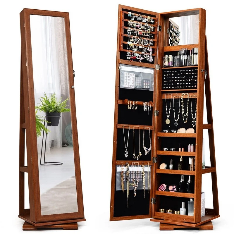 Okretno ogledalo sa ormarićem za nakit i pribor Braon