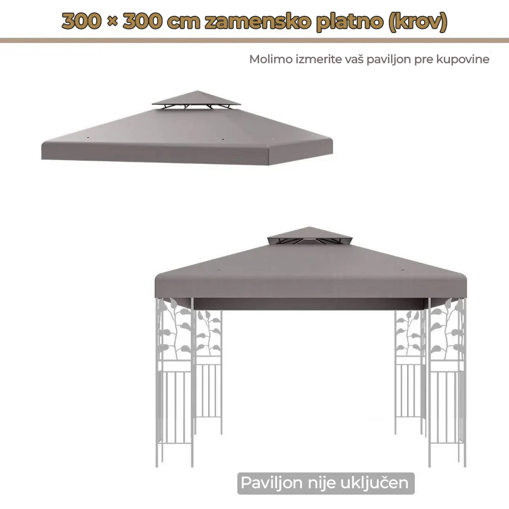 zamenski krov za paviljon 3x3 m – Vodootporna cerada sa dimnjak otvorom, siva
