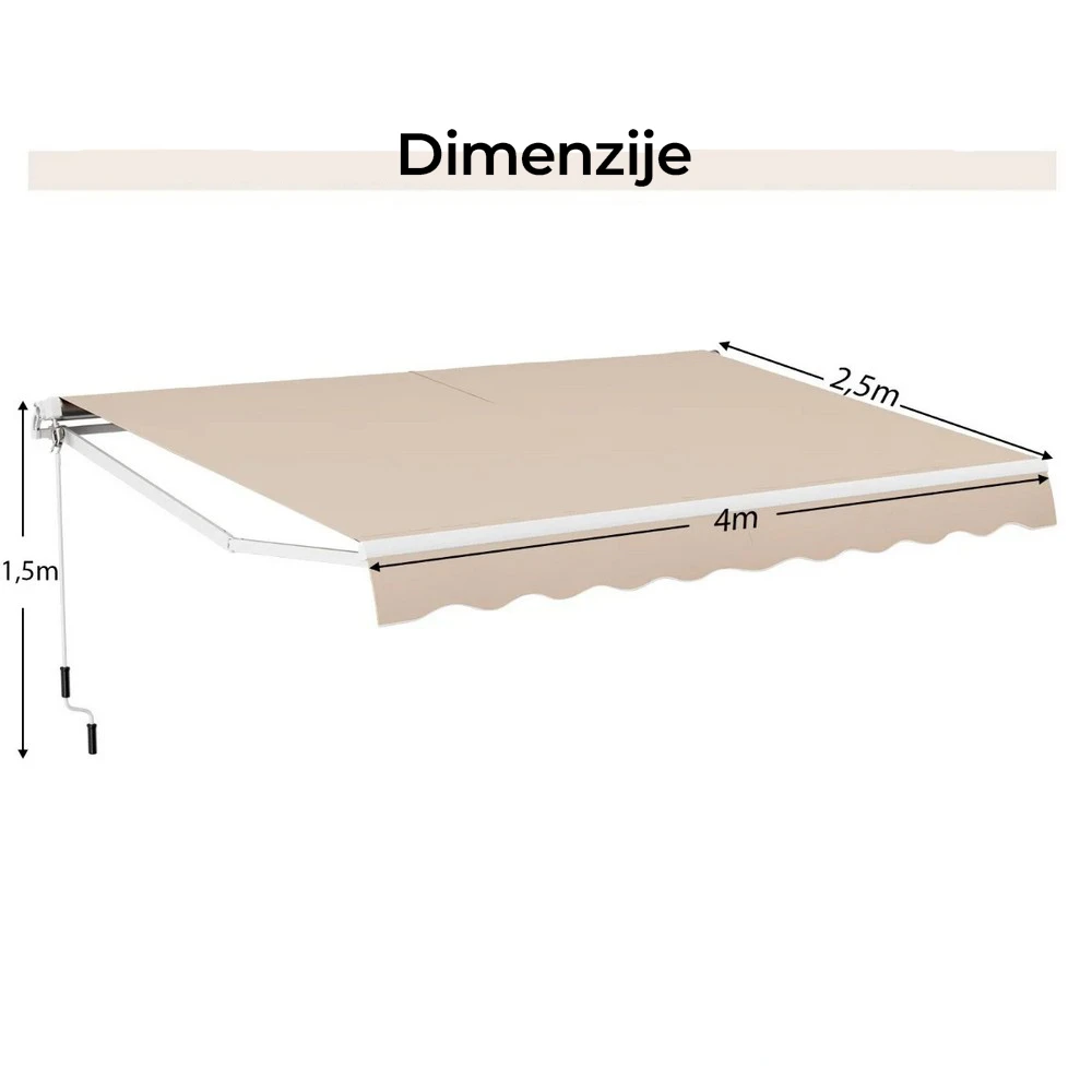 Uvlačivi (rolujući) dizajn: Tenda se lako uvlači u rolnu kada se ne koristi. Duga ručica omogućava jednostavno i glatko otvaranje i zatvaranje.