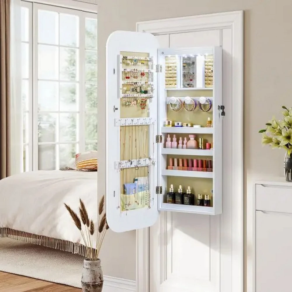 Organa za nakit sa 6 LED dioda, ogledalom, montiranjem na zid ili vrata, sa mogućnošću zaključavanja - bela
